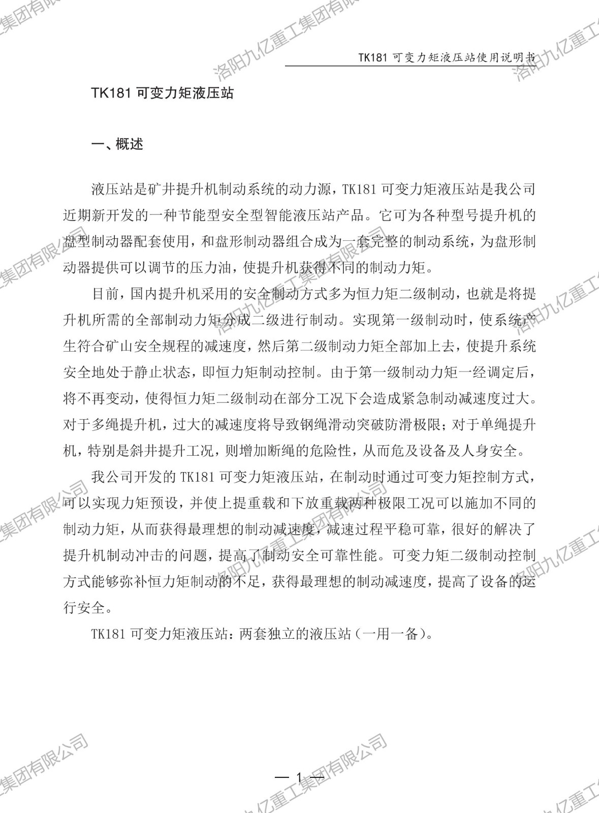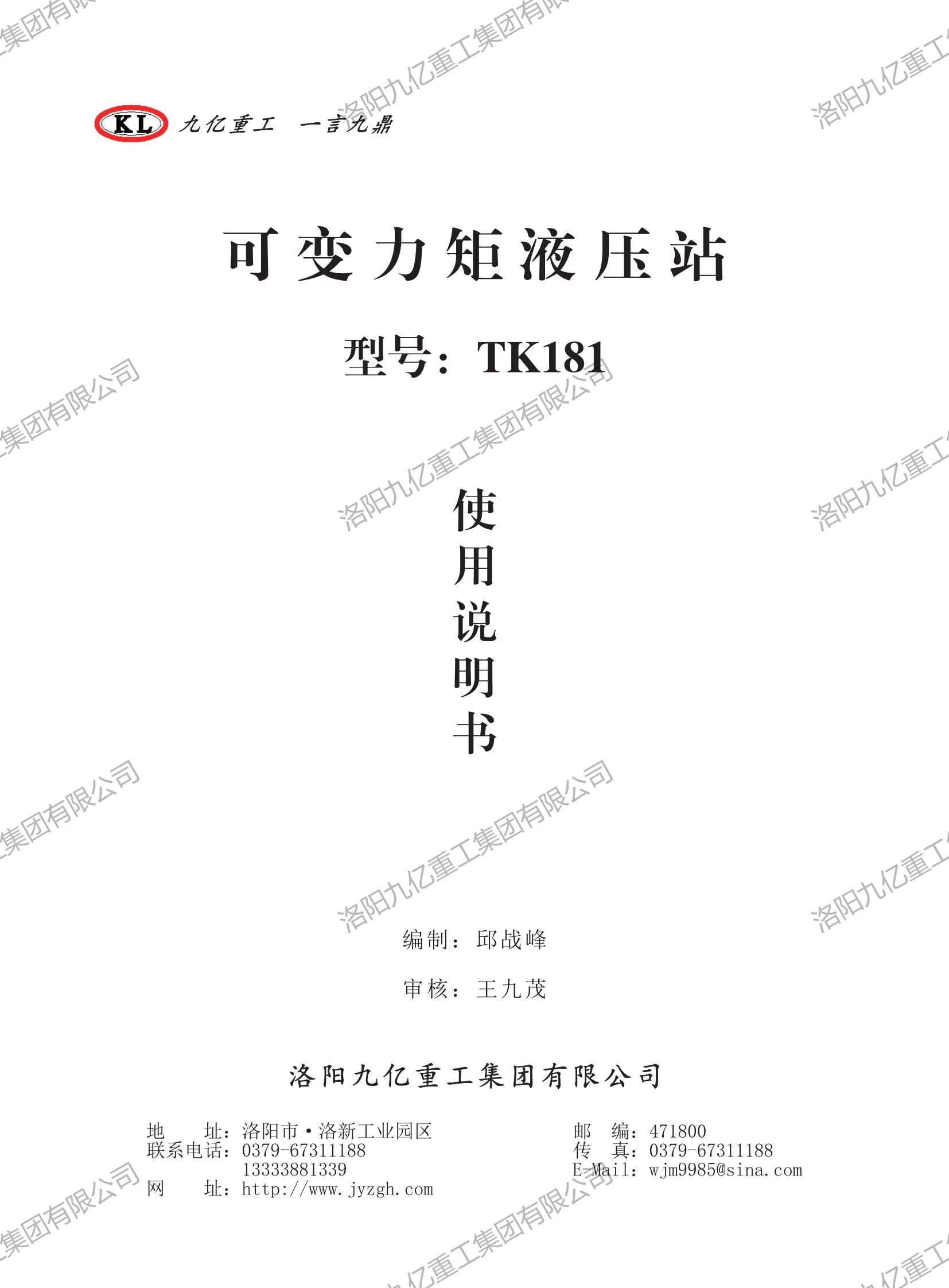 可變力矩液壓站TK181使用說明書